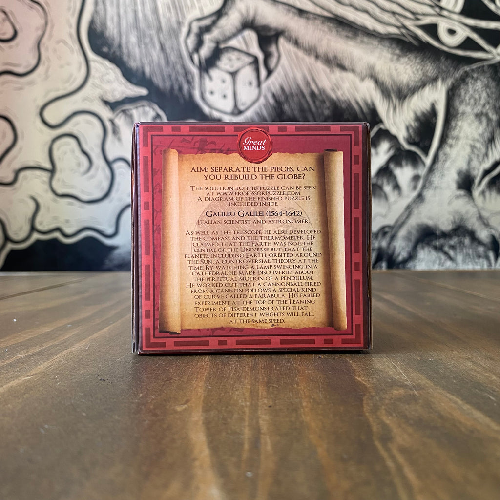 ¿Podrás dominar este desafiante rompecabezas de madera? Galileo's Globe es una pieza única de la serie Great Minds Puzzle, diseñada para poner a prueba tu lógica y habilidades de ensamblaje mientras rindes homenaje a uno de los científicos más brillantes de la historia.