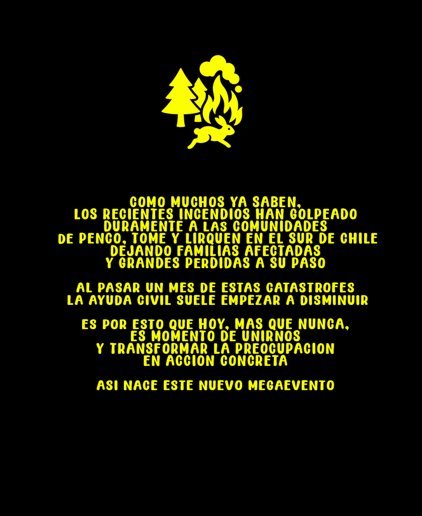 Te invitamos a un gran evento cultural en apoyo a las familias afectadas por el mega incendio en el sur.